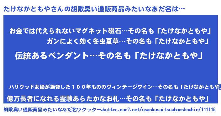 | 男性向けラノベタイトル風あだ名 | 『ダンジョンにたけなかともやを求めるのは間違っているだろうか』 |