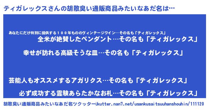| 意味不明あだ名 | 『ティガレックスフォーエバー』 |