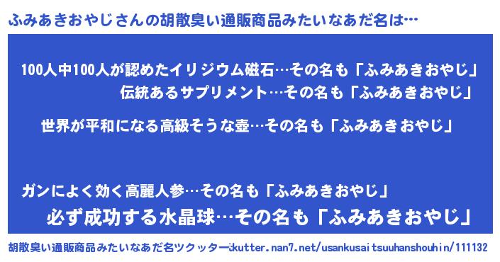 | 欧米人風あだ名 | 『ふみあきおやじクリステル』 |
