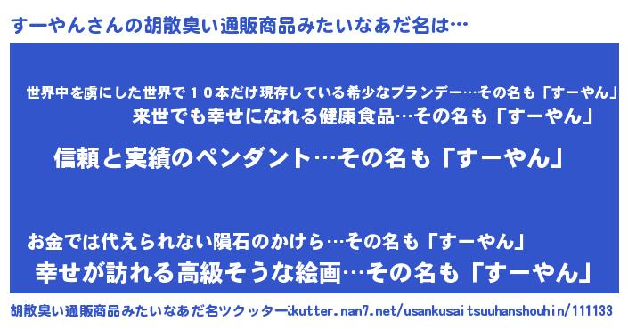 | ヒーロー風カッコイイあだ名 | 『魔戒騎士スー』『仮面スーダー』 |