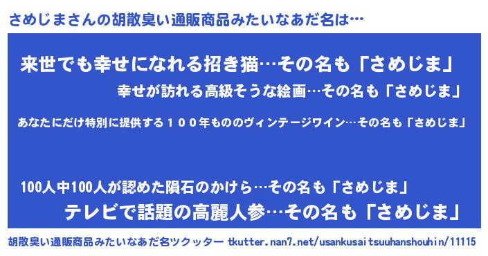 | 意味不明あだ名 | 『住所不定無職さめじま(13歳)』 |