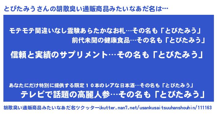 | 意味不明あだ名 | 『とにかく怪しいとびたみう』 |