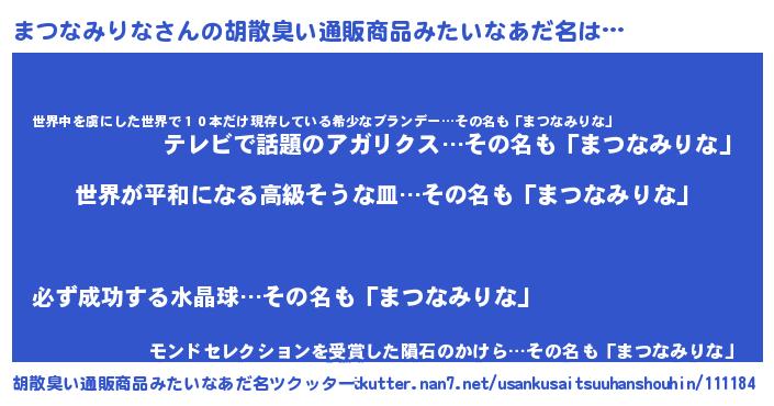| 意味不明あだ名 | 『まつなみりなフォーエバー』 |
