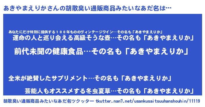 | 意味不明あだ名 | 『永久保存あきやまえりか』 |