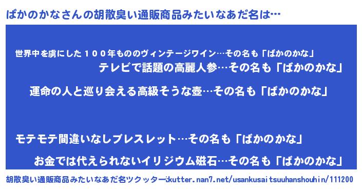 | 意味不明あだ名 | 『ニラ科ばかのかな属』『自称ばかのかな』 |