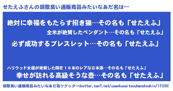 | 恥ずかしいあだ名 | 『プリティーせたえふ』『せたちん』 |