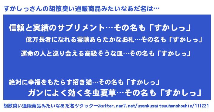 | 意味不明あだ名 | 『すかしっフォーエバー』『自称すかしっ』 |