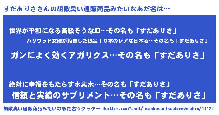 | 伝説のあだ名 | 『秘められし忍者すだありさ』 |