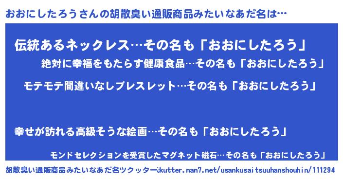 | 意味不明あだ名 | 『ペロリンおおにしたろう』 |