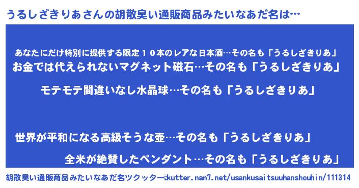 | ヘコむあだ名 | 『うるにゅー』『うるっ子』 |
