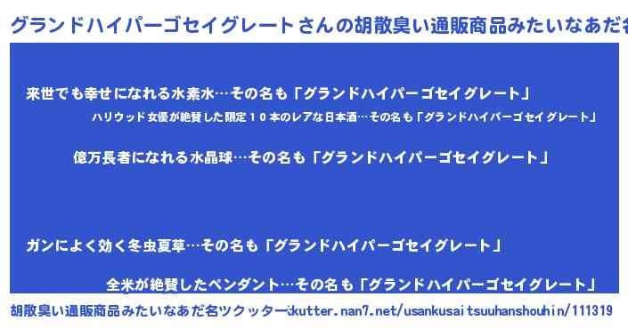 | ヒーロー風カッコイイあだ名 | 『スーパーグランドハイパーゴセイグレート』 |