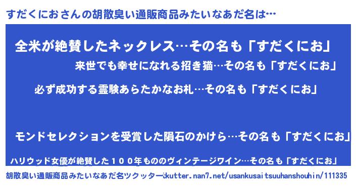 | 欧米人風あだ名 | 『トリンドルすだくにお』 |