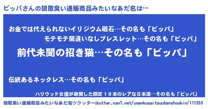 | ヘコむあだ名 | 『ビッパ(笑)』『ビッにゅー』 |