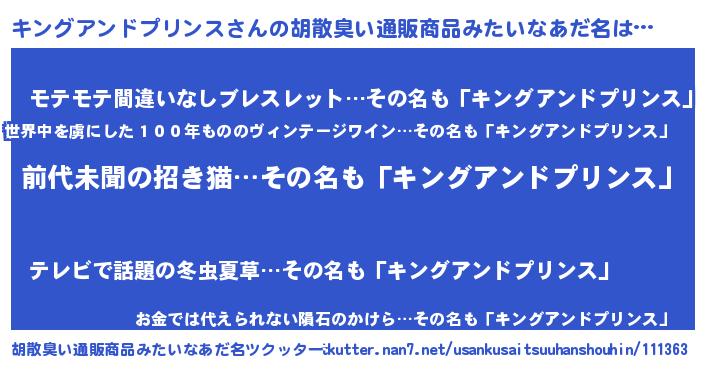 | 伝説のあだ名 | 『古文書に記された吟遊詩人キングアンドプリンス』 |
