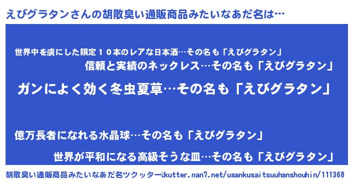 | 意味不明あだ名 | 『自称えびグラタン』 |