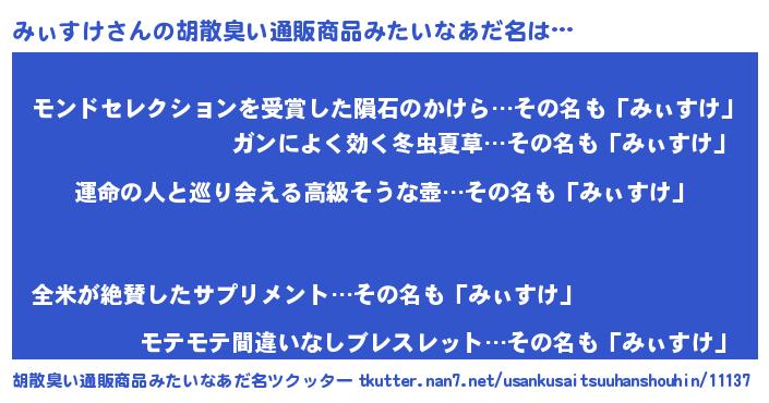 | 意味不明あだ名 | 『みぃすけフォーエバー』『自称みぃすけ』 |