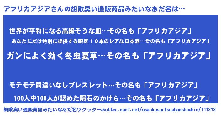 | 意味不明あだ名 | 『自称アフリカアジア』 |
