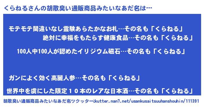 | ヘコむあだ名 | 『くらふぇ~』『くらねる(遠い目)』 |