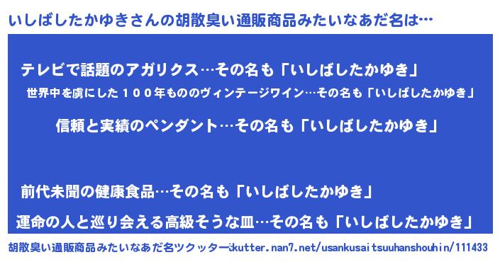 | 意味不明あだ名 | 『とにかく怪しいいしばしたかゆき』 |