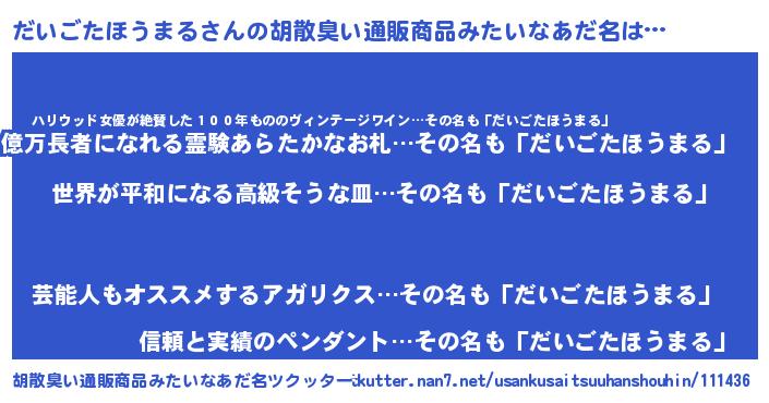 | 意味不明あだ名 | 『だいごたほうまるフォーエバー』 |