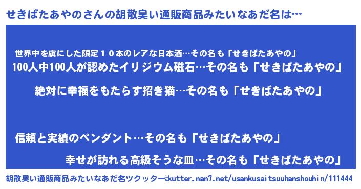 | 意味不明あだ名 | 『永久保存せきばたあやの』 |