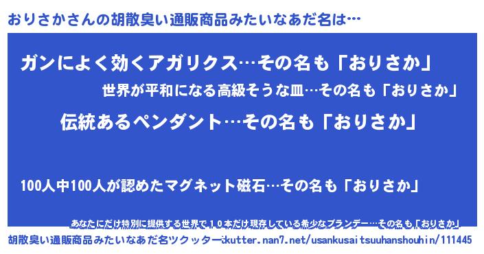 | 欧米人風あだ名 | 『おりさか・ステッグマイヤー』 |