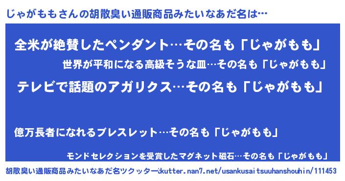 | 男性向けラノベタイトル風あだ名 | 『転生したらじゃがももだった件』 |