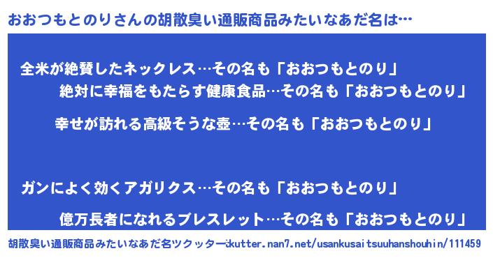 | 欧米人風あだ名 | 『おおつもとのりクリステル』 |