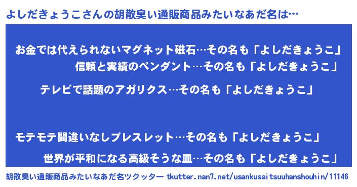 | 意味不明あだ名 | 『自称よしだきょうこ』 |