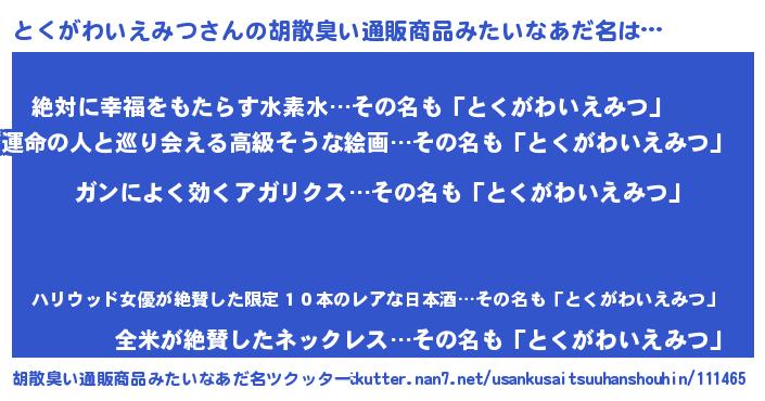 | 意味不明あだ名 | 『自称とくがわいえみつ』 |