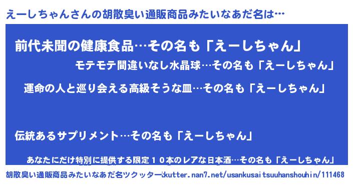 | ファンタジー風あだ名 | 『エターナルエーシチャンー』 |