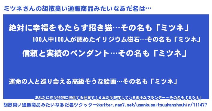 | ヘコむあだ名 | 『ミツぷりん』『ミツネ(笑)』 |