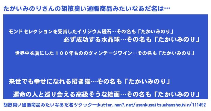 | 意味不明あだ名 | 『住所不定無職たかいみのり(5歳)』 |