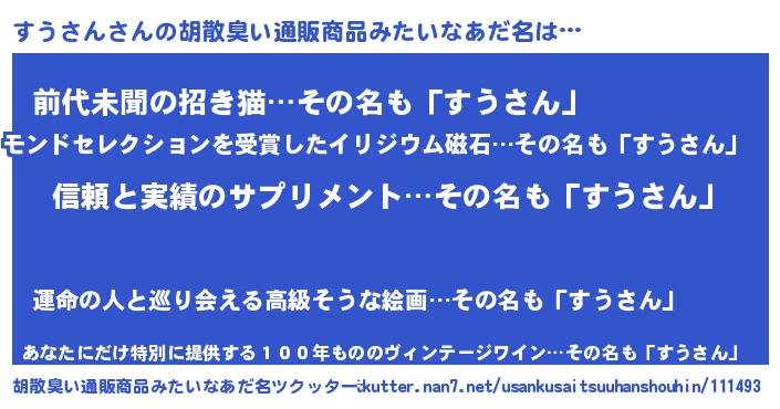 | ヘコむあだ名 | 『すうお』『すうさん(笑)』 |