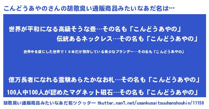| 意味不明あだ名 | 『住所不定無職こんどうあやの(81歳)』 |