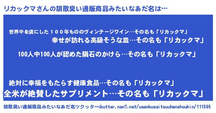 リカックマさんの胡散臭い通販商品みたいなあだ名をツクッター!