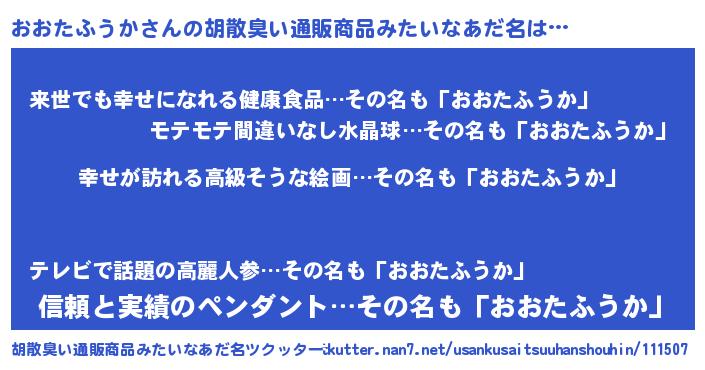 | 欧米人風あだ名 | 『おおたふうかクリステル』 |