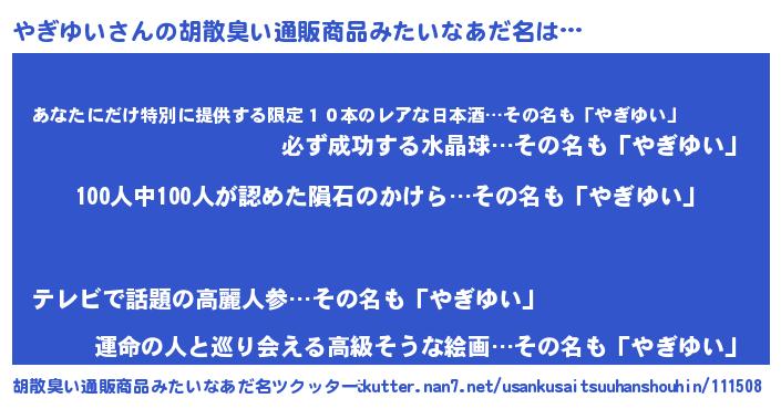 | 欧米人風あだ名 | 『やぎゆい・ステッグマイヤー』 |