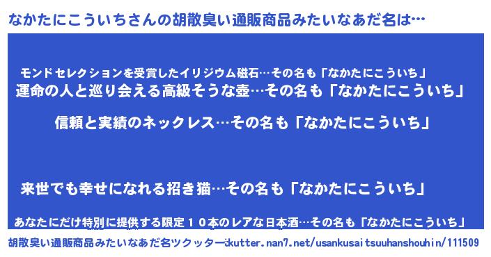| 意味不明あだ名 | 『とにかく怪しいなかたにこういち』 |