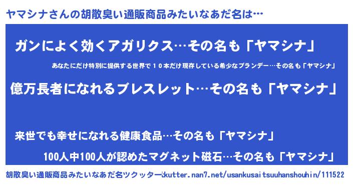| 意味不明あだ名 | 『ペロリンヤマシナ』『自称ヤマシナ』 |