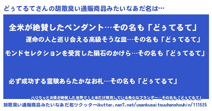 | ヒーロー風カッコイイあだ名 | 『慈愛の使者どぅてるて』『天弓騎士ドゥ』 |