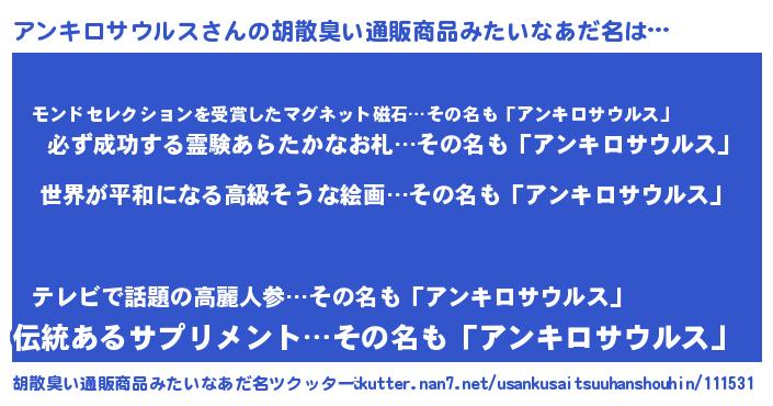 | 男性向けラノベタイトル風あだ名 | 『やはりアンキロサウルスの青春ラブコメはまちがっている 』 |