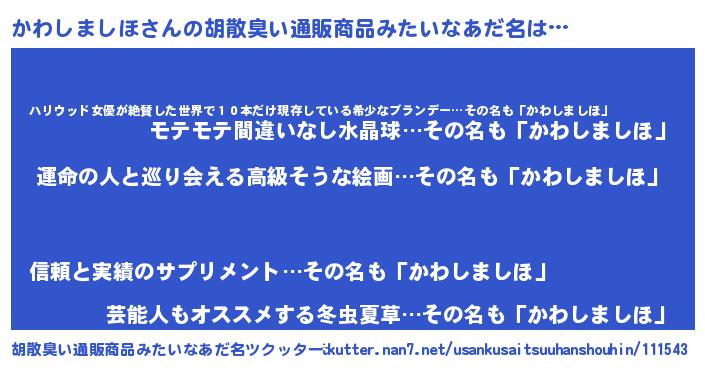 | ヒーロー風カッコイイあだ名 | 『ウルトラかわしましほマン』 |