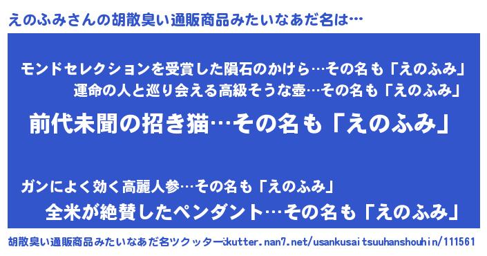 | 意味不明あだ名 | 『永久保存えのふみ』『ニラ科えのふみ属』 |