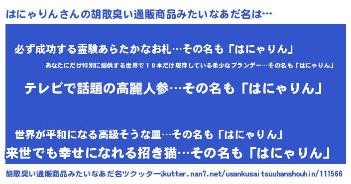 | ヒーロー風カッコイイあだ名 | 『サイバー戦士ハニャリン』 |