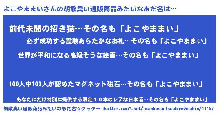 | 意味不明あだ名 | 『よこやままいフォーエバー』 |