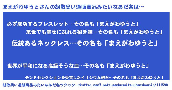 | 意味不明あだ名 | 『とにかく怪しいまえがわゆうと』 |