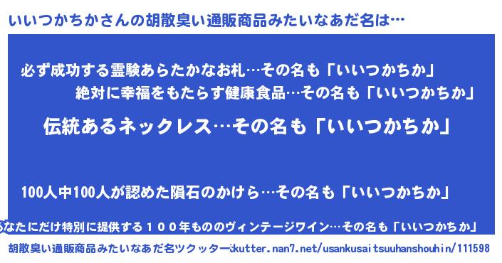 | 意味不明あだ名 | 『とにかく怪しいいいつかちか』 |