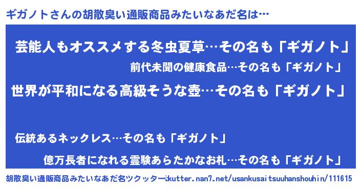| ヒーロー風カッコイイあだ名 | 『ウルトラギガノトマン』『ネオギガノト』 |