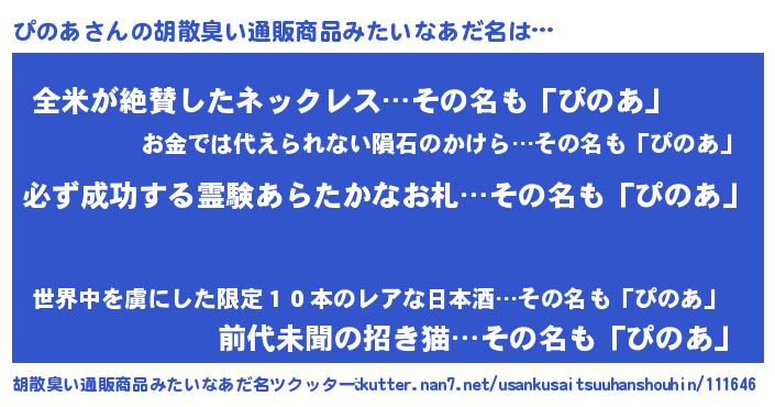 | ヘコむあだ名 | 『ぴのもー』『ぴのっ子』『豆乳』 |